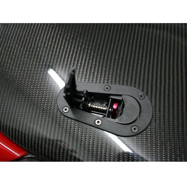 Functionarea sa este identica cu un dispozitiv de fixare a capotei de tip „Dakar” care foloseste un stift de blocare.